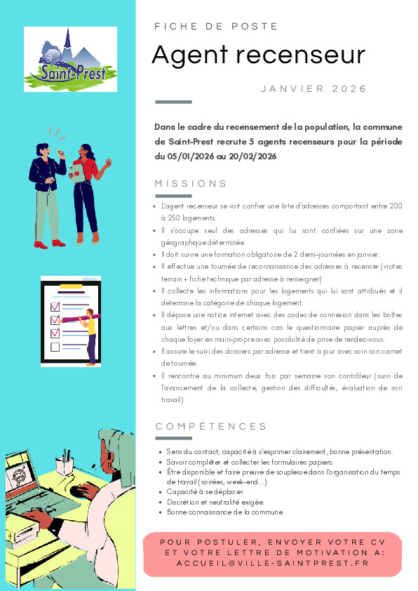 Vous êtes disponibles, rigoureux et aimez le contact avec la population? Rejoignez l'équipe et devenez agent recenseur!