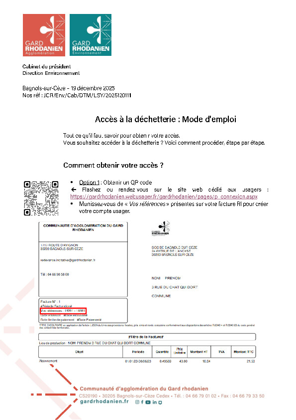 un mémo concernant le mode d'accès aux déchetteries qui sera en vigueur début janvier 2026.
