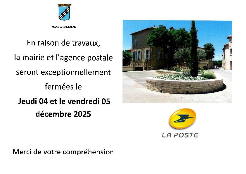 FERMETURE MAIRIE ET AGENCE POSTALE CHUSCLAN