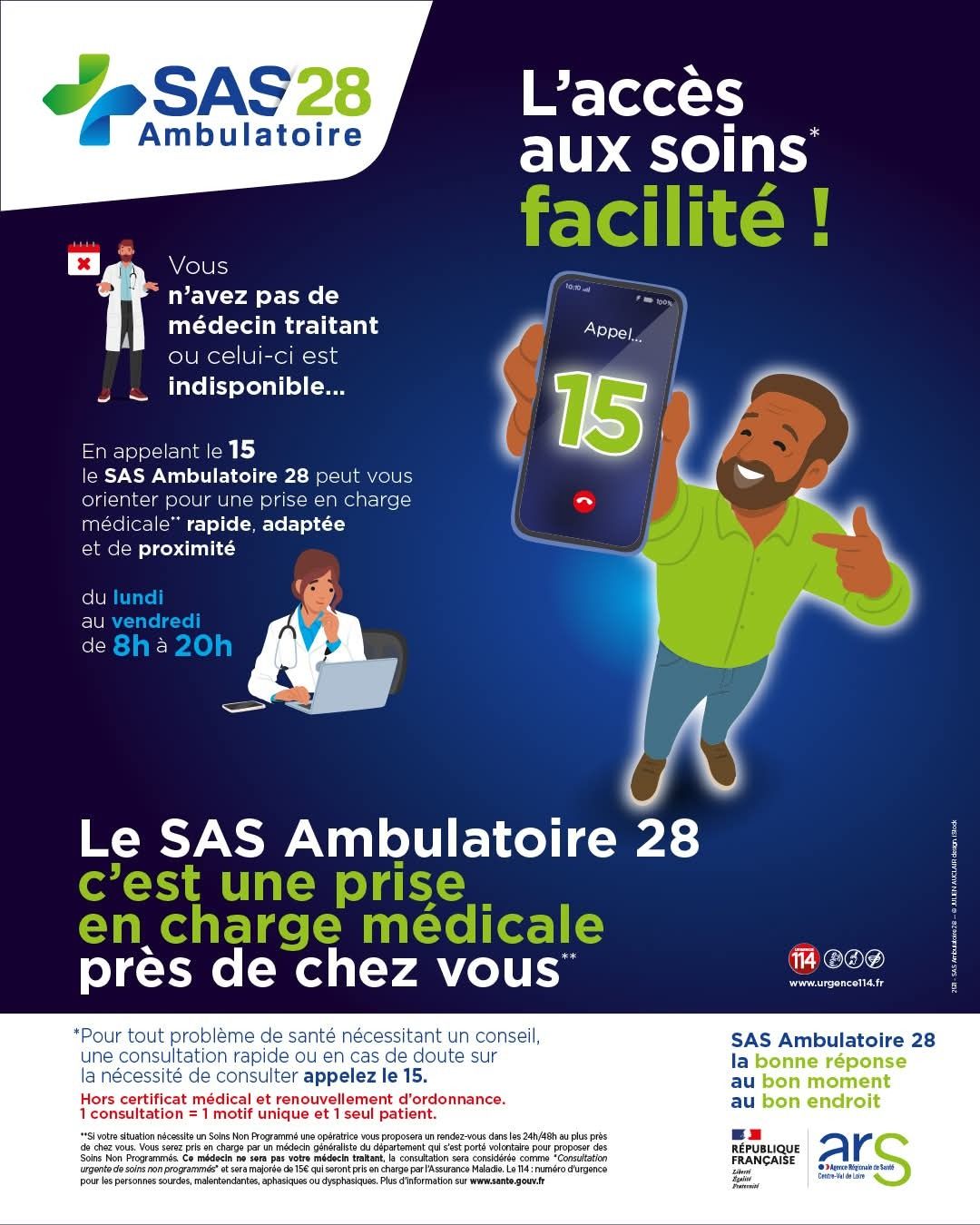 ✅ Le SAS Ambulatoire 28 vous orientera vers une prise en charge médicale RAPIDE, ADAPTÉE et de PROXIMITÉ