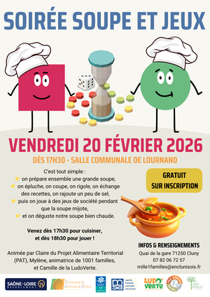 C’est ouvert à tous, mais sur inscription au 07.82.06.72.57 ou par mail à mille1familles@enclunisois.fr, pour prévoir les quantités !