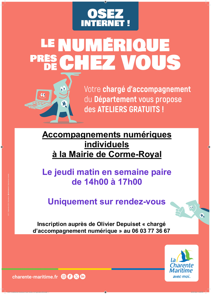 Le Département de la Charente-Maritime, propose des accompagnements numériques à la mairie de Corme-Royal.