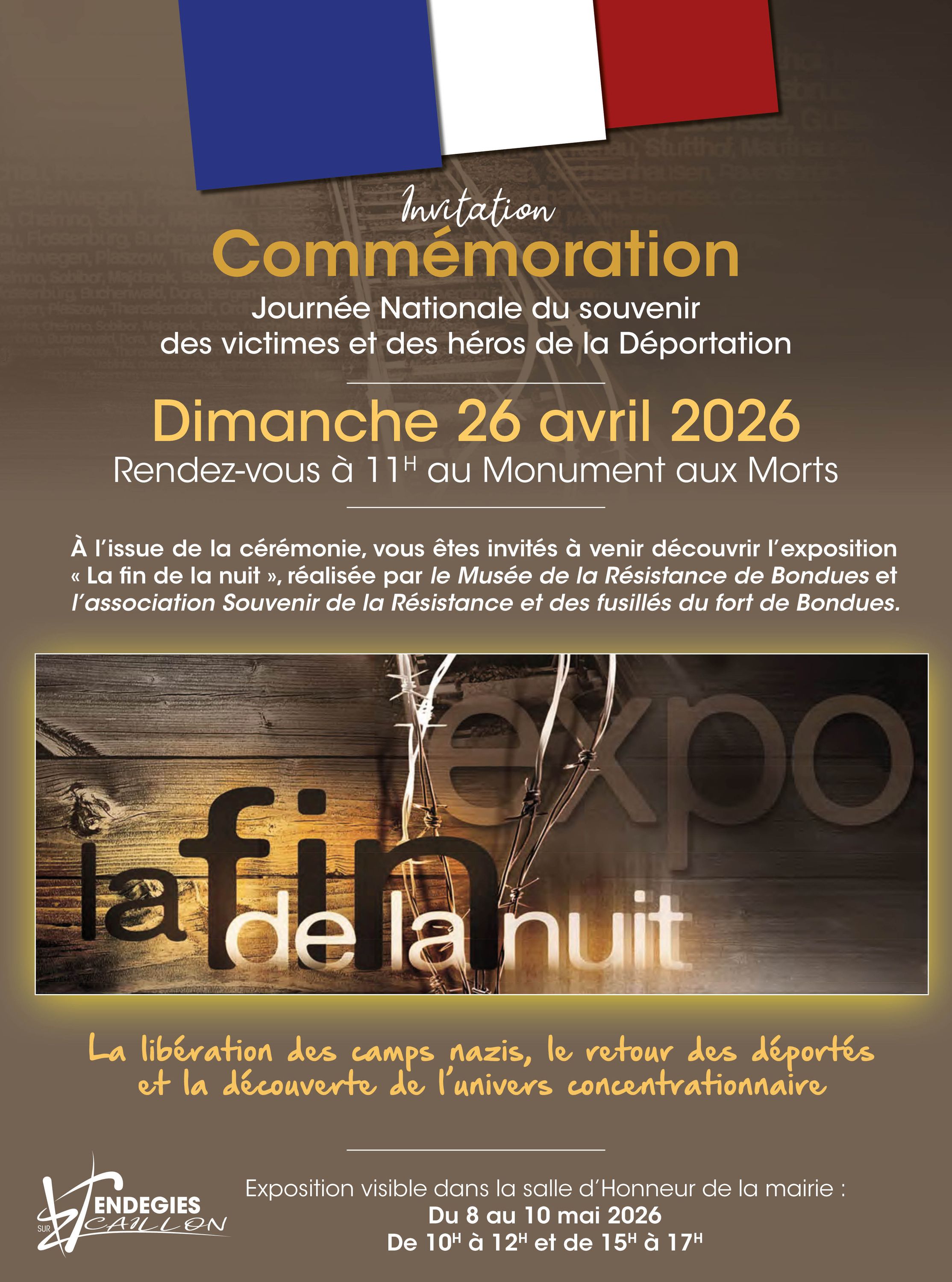 A l'issue de la commémoration du 26 avril, vous êtes invités à venir découvrir l'exposition éphémère " la fin de la nuit " réalisée par Le Musée de la Résistance de Bondues et l'association Souvenir de la Résistance et des fusillés du fort de Bondues.
