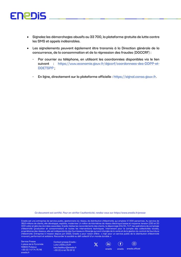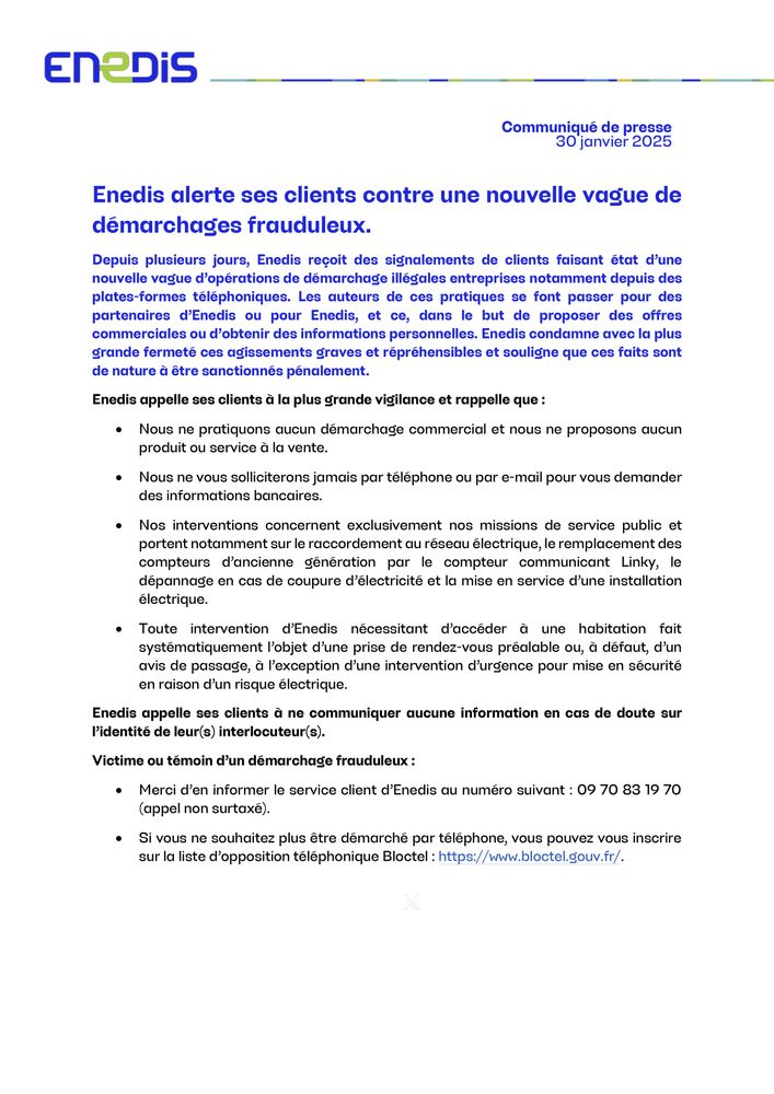 Démarchages frauduleux ENEDIS