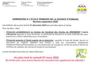 Admissions à l'école primaire - ESMANS