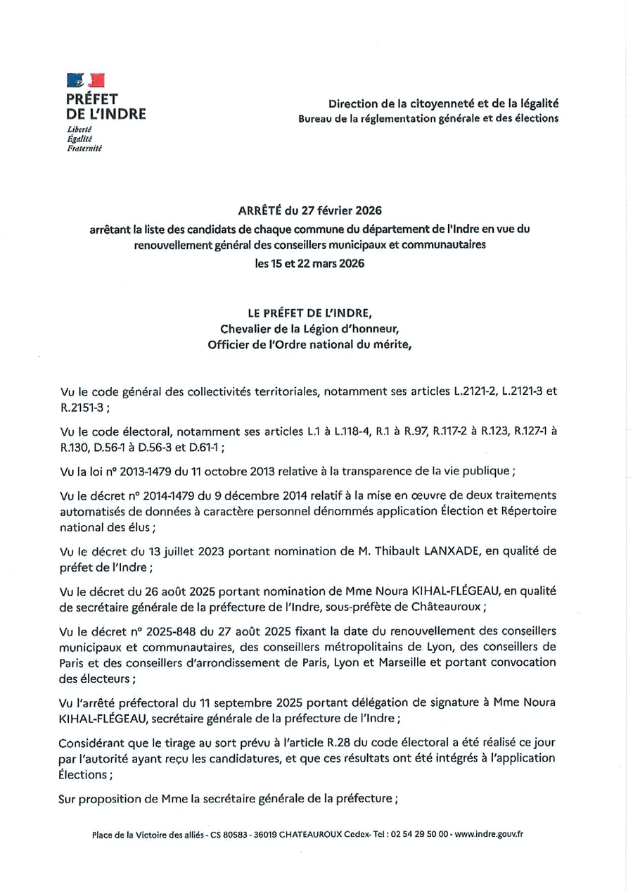 ARRETE LISTE DES CANDIDATS