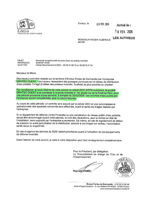 Durant ces travaux l'entreprise à une autorisation de puiser l'eau sur la borne incendie située rue du Parc.