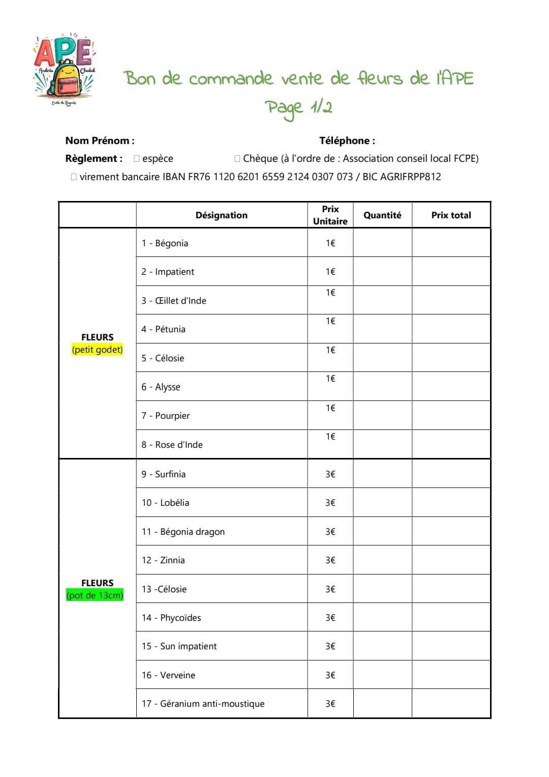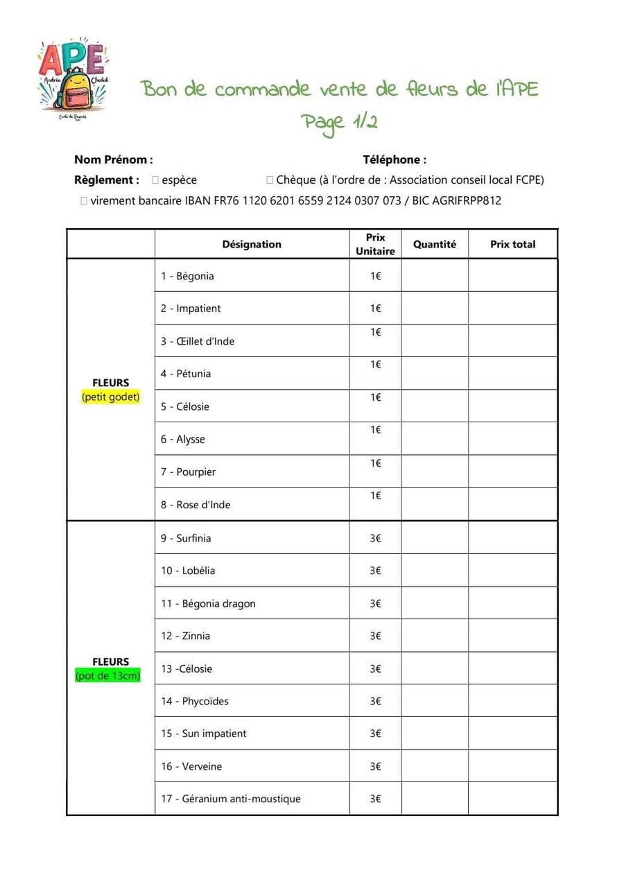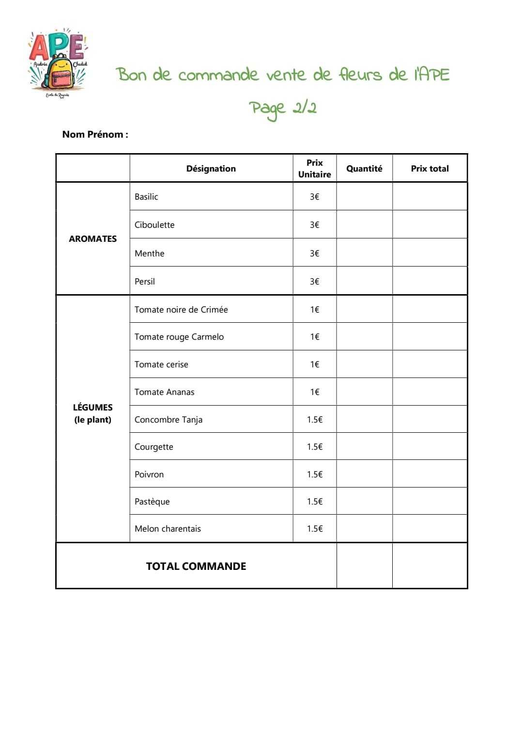 Bons de commande ci-dessous et disponibles en mairie
