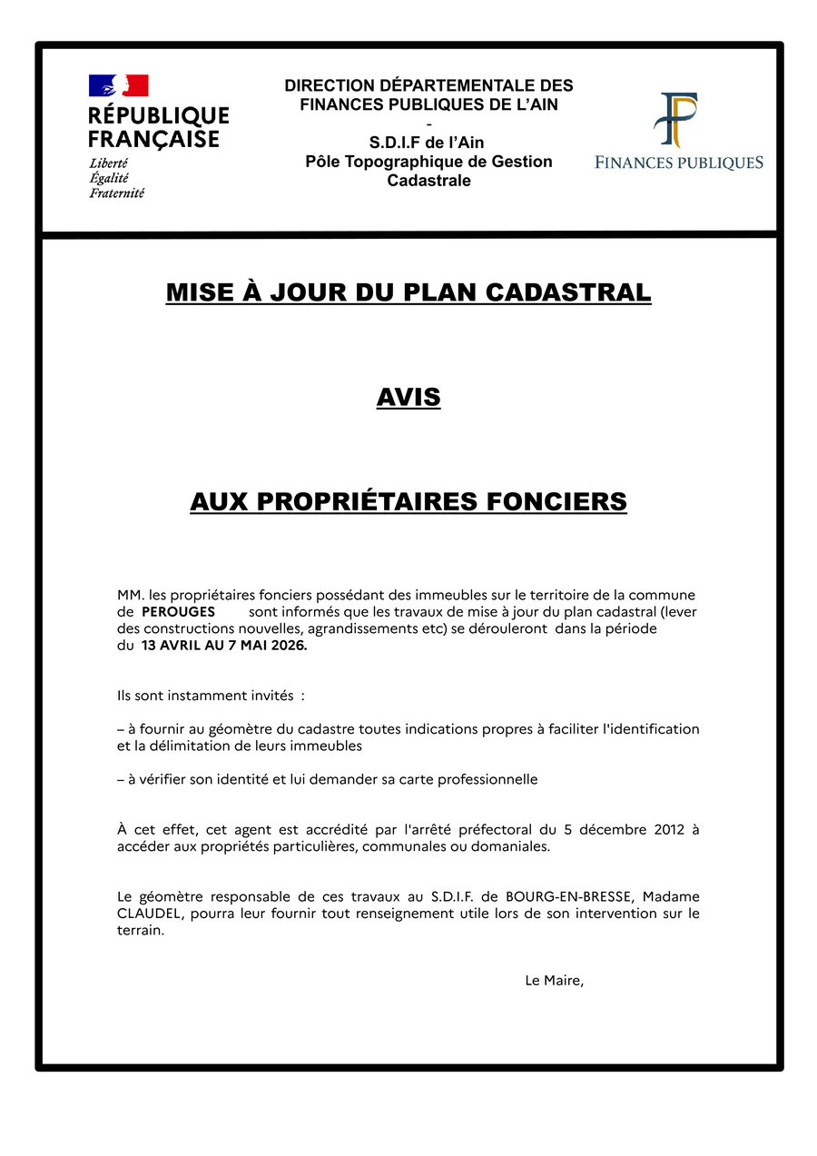 Mise à jour du Plan cadastral