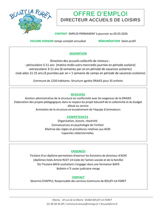 OFFRE D'EMPLOI : DIRECTEUR ACM DE BOUZY LA FORÊT