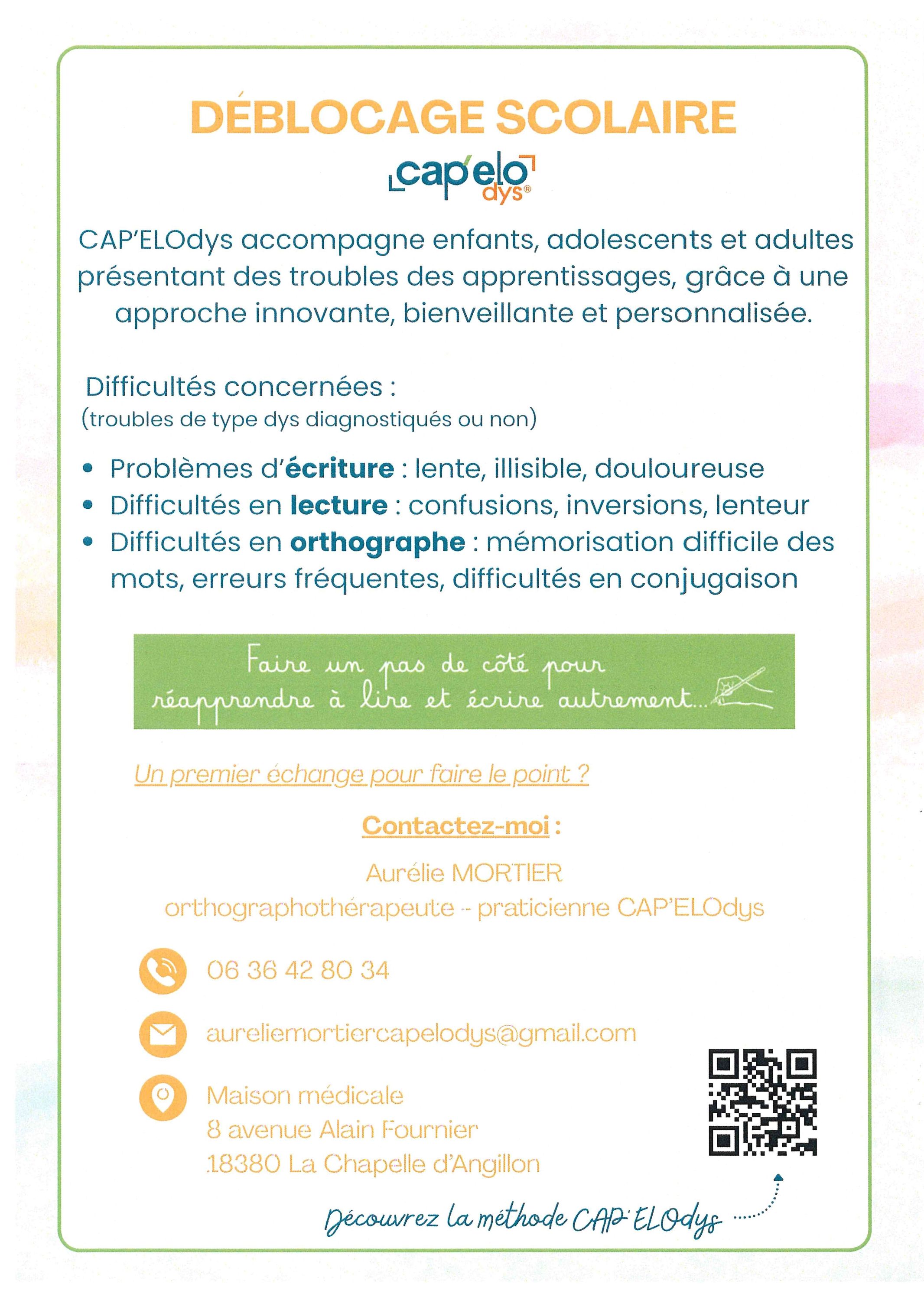 Elle vous accueillera en consultation à la maison médicale de La Chapelle-d'Angillon.