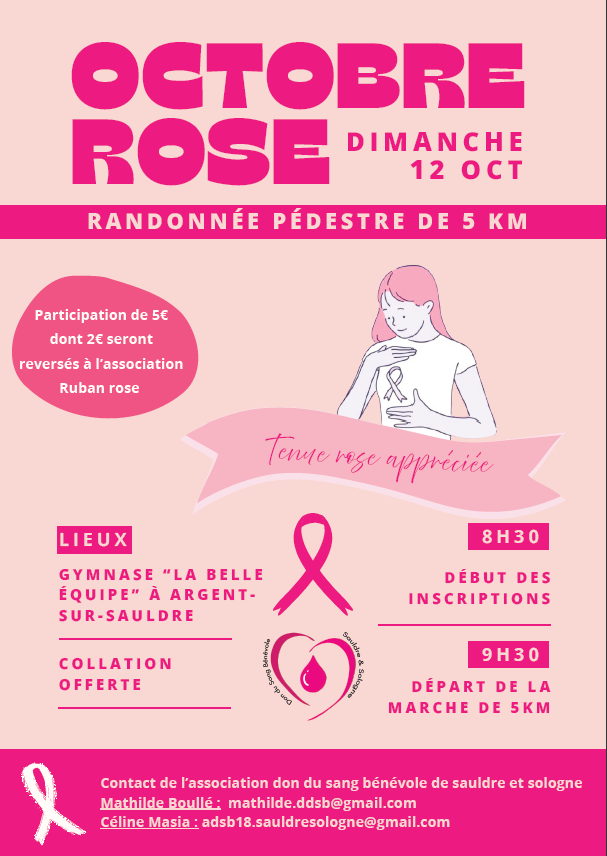 Randonnée pédestre de 5 km le dimanche 12 octobre à 08h30