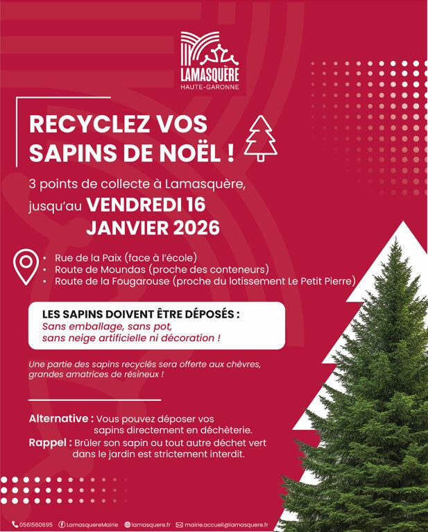 3 points de collecte sont disponibles dans la commune de Lamasquère pour recycler vos sapins naturels !