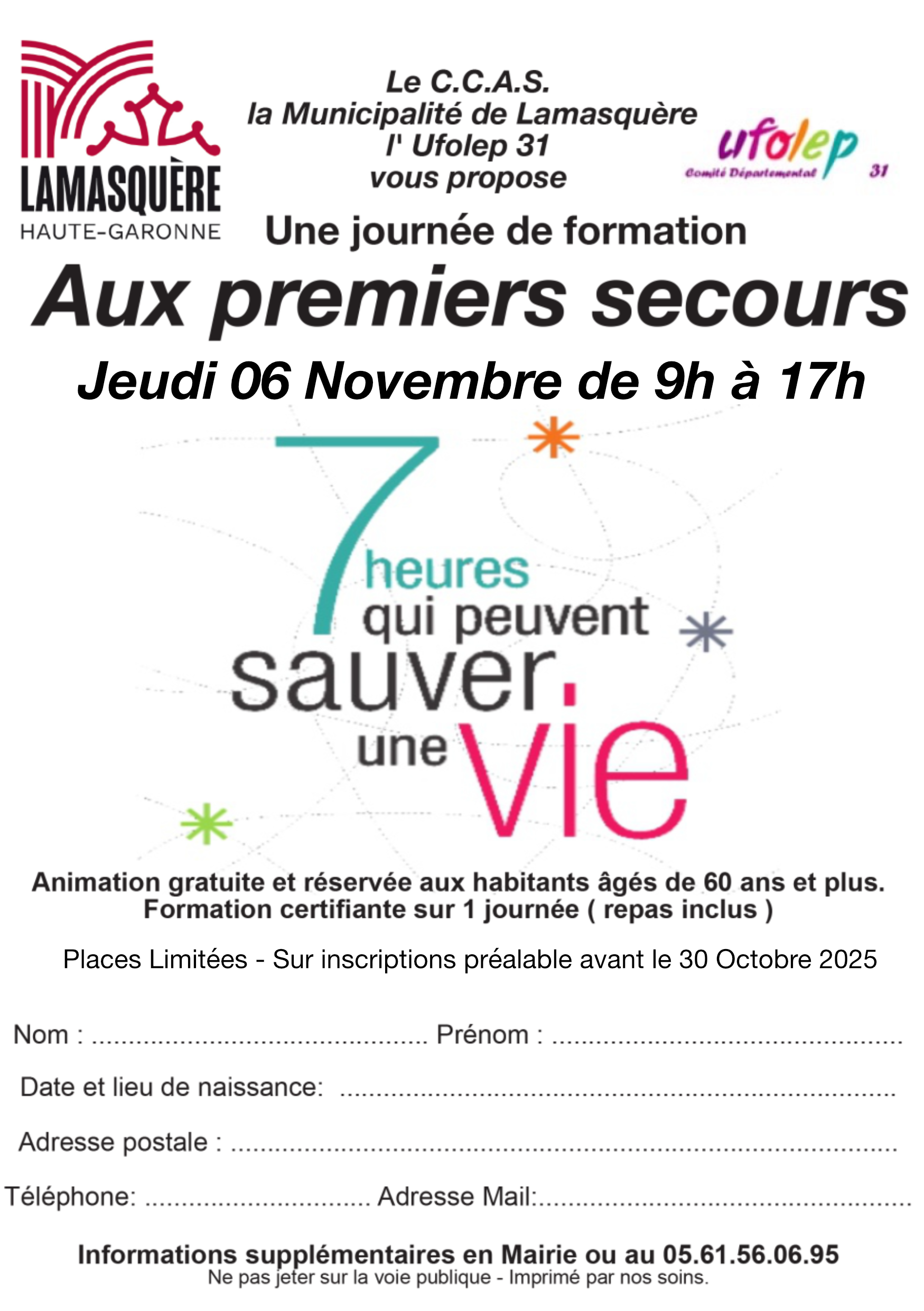 Animation gratuite sur inscription en mairie ou au 0561560695