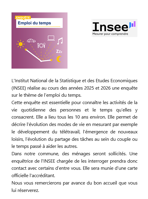 Enquête INSEE sur le thème de l'emploi du temps