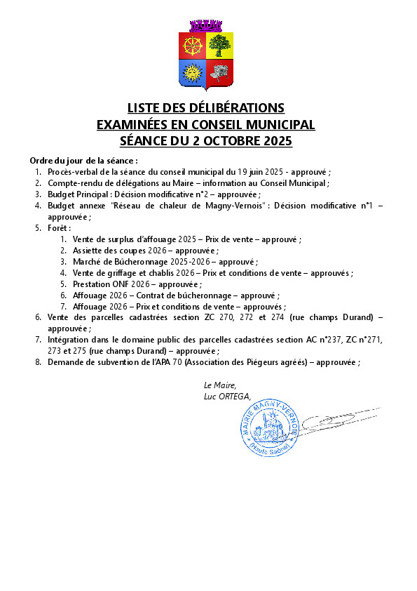 Conseil Municipal - Séance du 02/10/2025