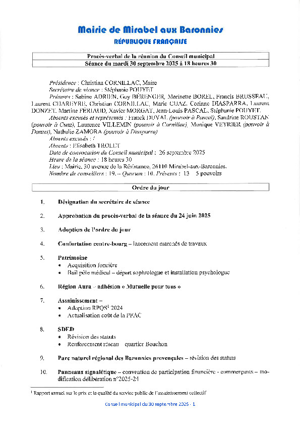Séance 30/09/2025 - PV des délibérations