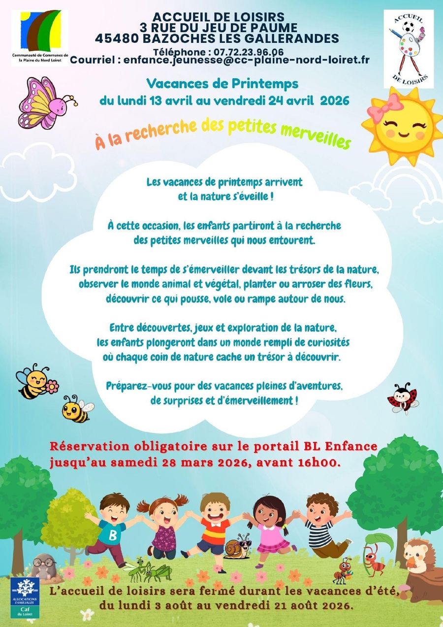 Les vacances de printemps 🪻 approchent à grands pas et la nature 🌱 🦗 s'éveille à l'Accueil de Loisirs de Bazoches-les-Gallerandes !