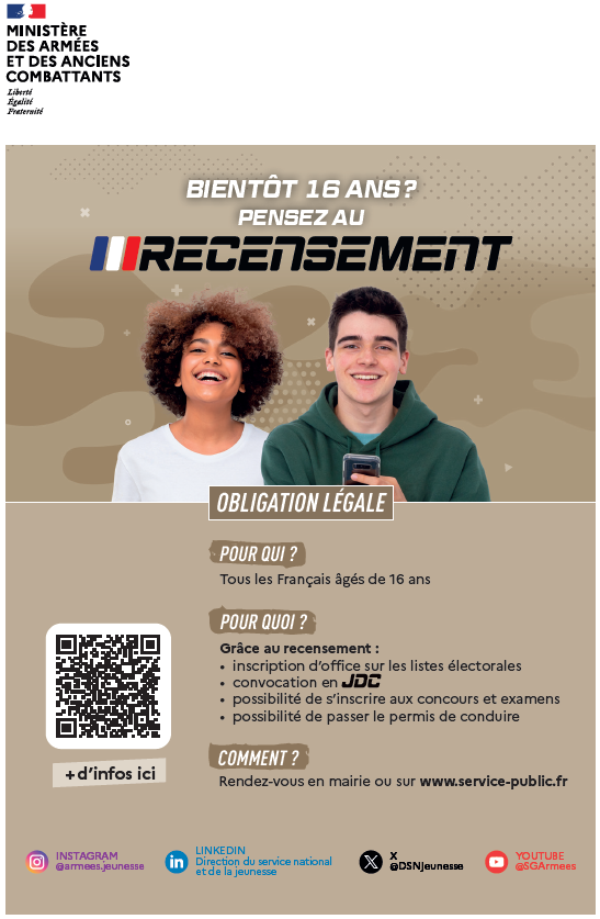 Dès leur *recensement en mairie ils peuvent télécharger (grâce au QRCODE) l’application DEFENSE + et créer leur compte immédiatement.
