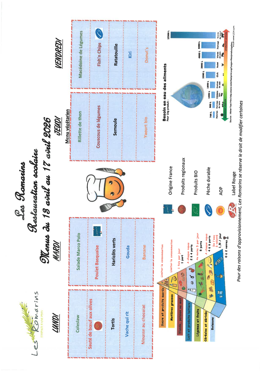 MENU CANTINE 13 AU 17 AVRIL 26