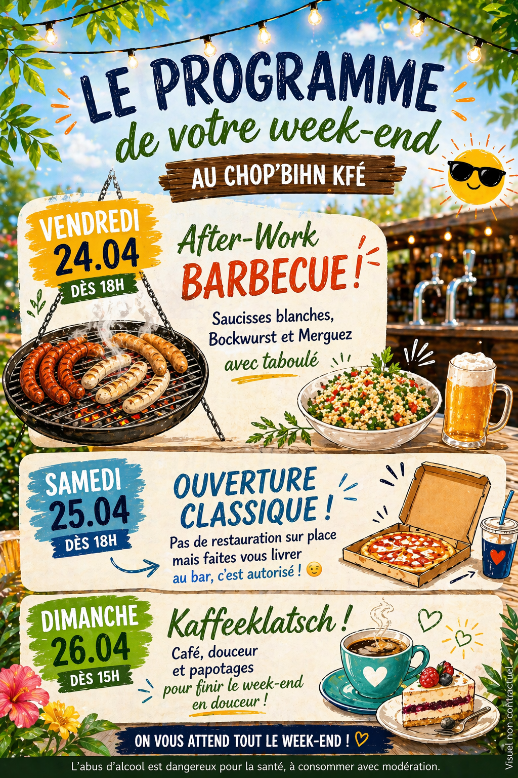 CHOP'BIHN Kfé - Week-end du 24 au 26 avril 2026