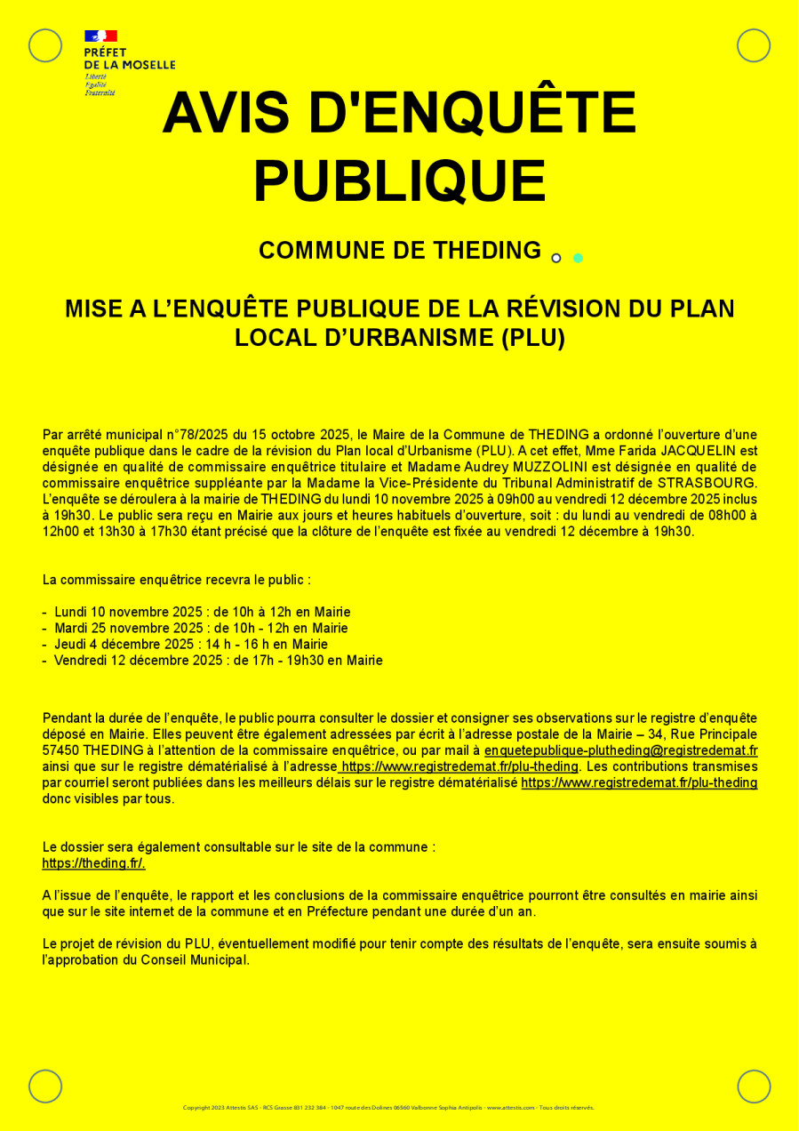 AVIS D'ENQUETE PUBLIQUE - révision PLU