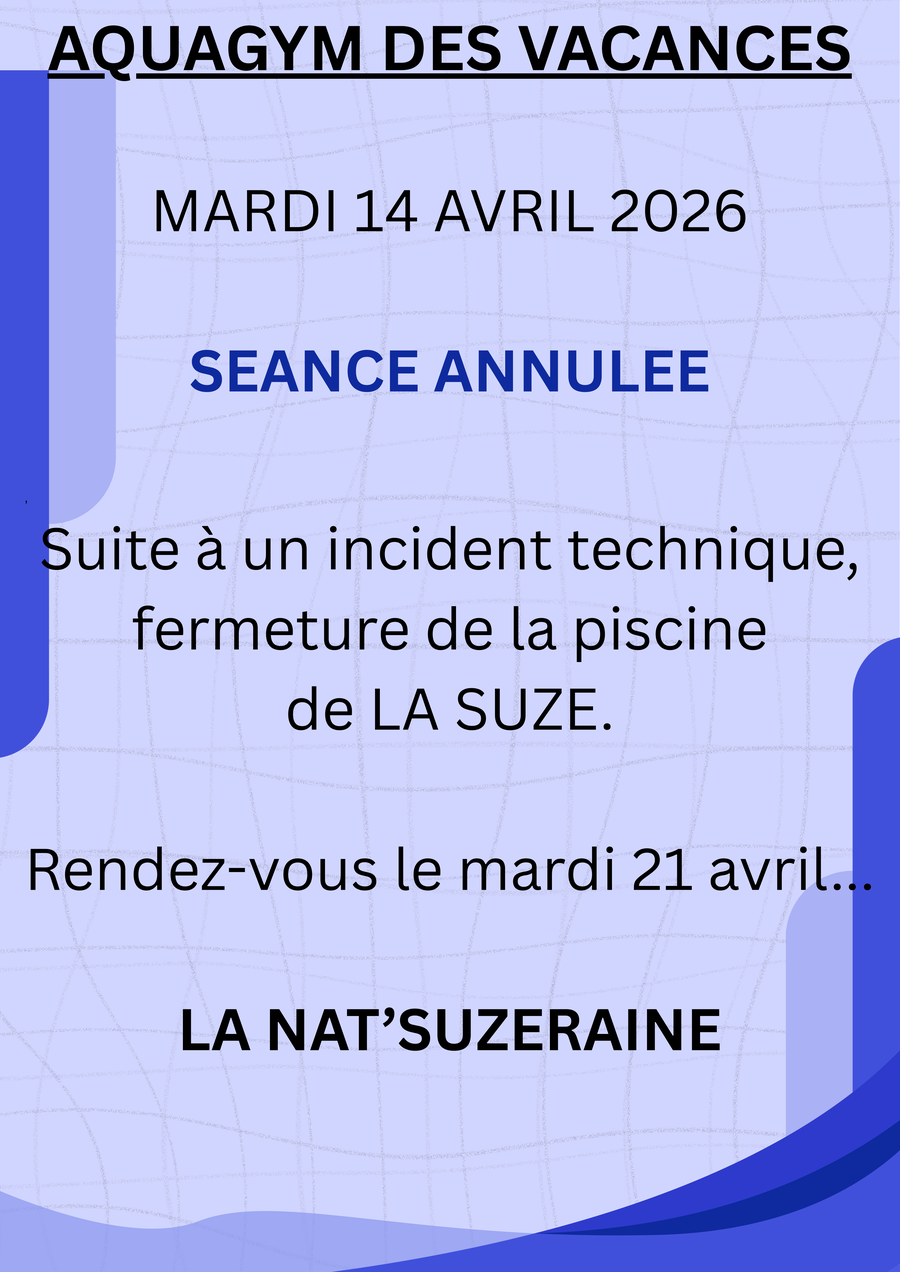 Annulation séance d'aquagym du 14 avril