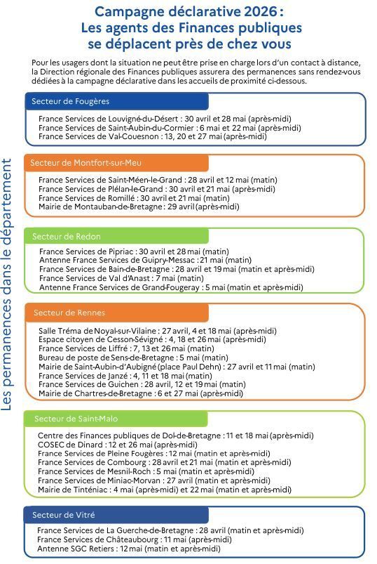 les agents des Finances publiques tiendront des permanences sans rendez-vous en Ille-et-Vilaine.