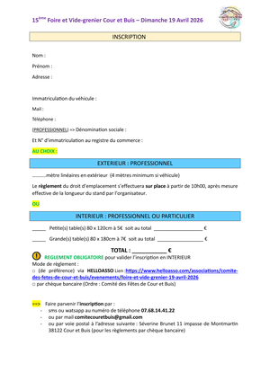 Renseignements et inscriptions: