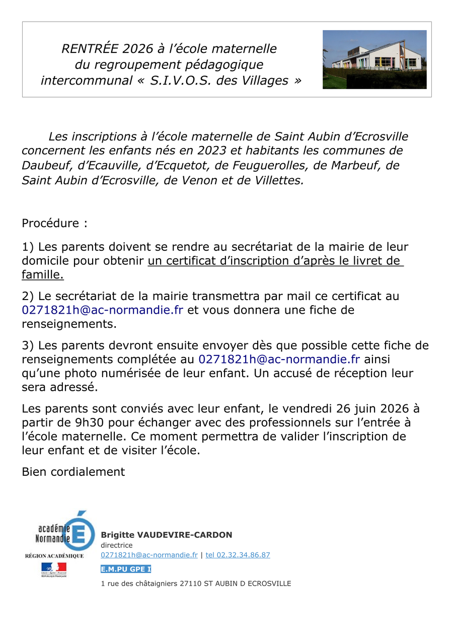 La période des pré inscriptions scolaires est ouverte pour les enfants nés en 2023.