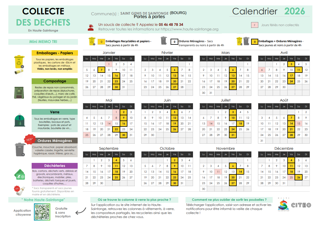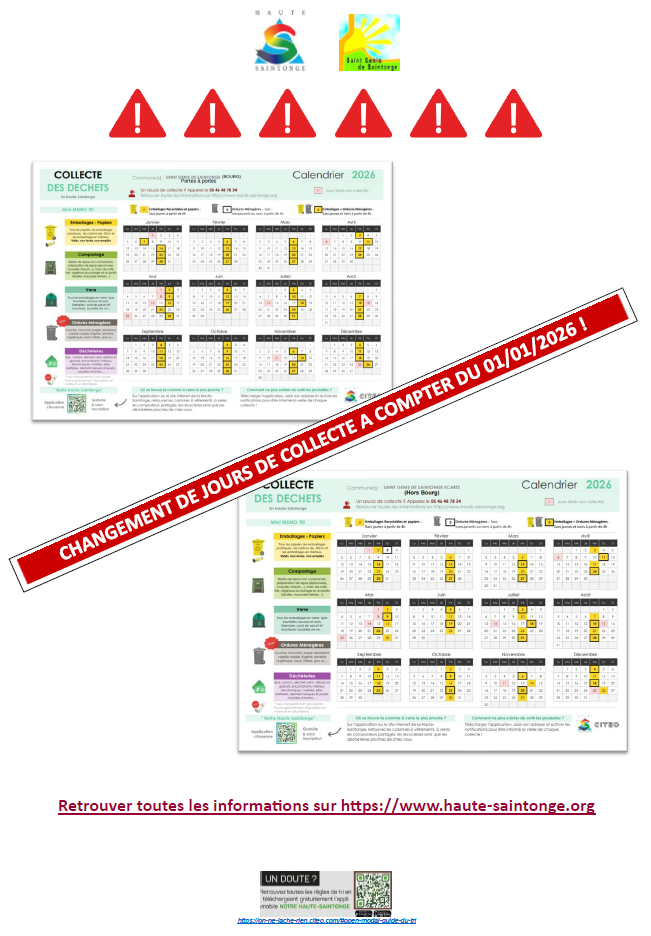 Veuillez prendre connaissance des nouveaux calendriers de collecte.