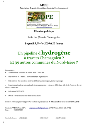 L'association de protection et de défense de l'environnement organise une réunion publique sur le projet PIPELINE HYDROGÈNE