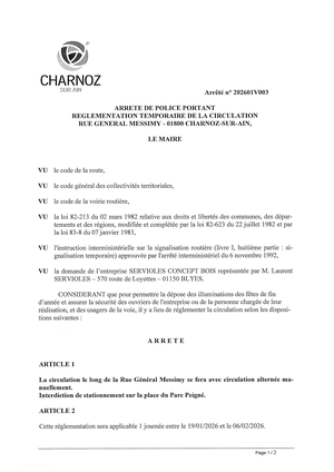 Arrêté circulation rue Général Messimy