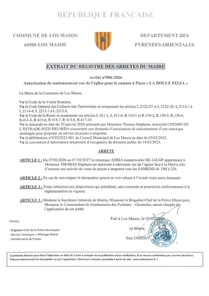 ARRETE : AUTORISATION DE STATIONNEMENT