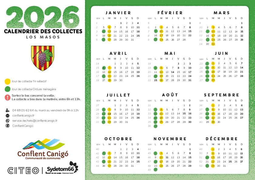 La mairie vous communique le calendrier de collecte des ordures ménagères 2026 pour la commune