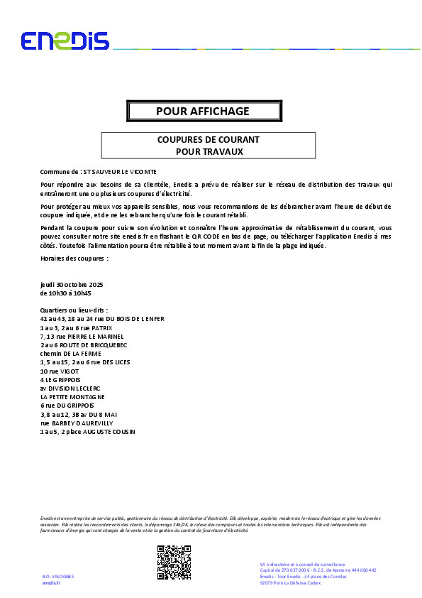 Coupure ENEDIS le 30 Octobre 2025 matin