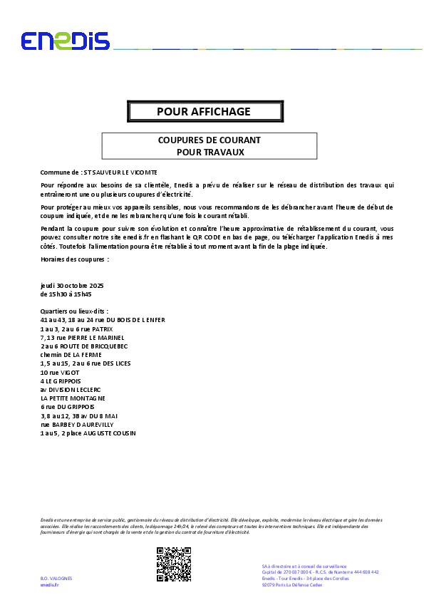 Coupure ENEDIS le 30 Octobre 2025 après-midi