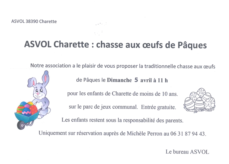 vous propose la traditionnelle Chasse aux œufs de Pâques