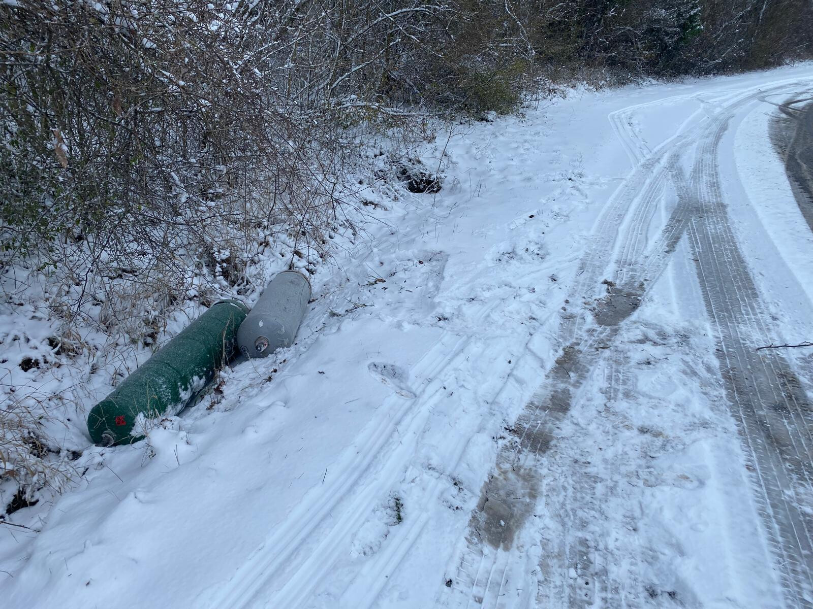 Des individus peu respectueux ont déposé ces bobonnes en bordure de la route nous reliant à la Chapelle Gauthier ;
