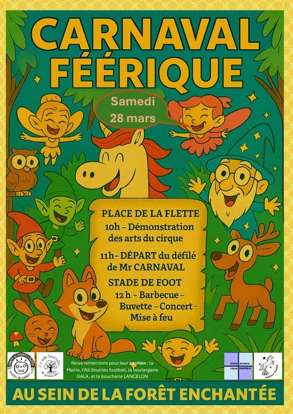 Les associations des parents d’élèves : CPE - Ecole Publique de Soucieu en Jarrest et APEL Saint Julien Soucieu-en-Jarrest vous donnent rendez-vous le samedi 28 mars pour un carnaval féérique.