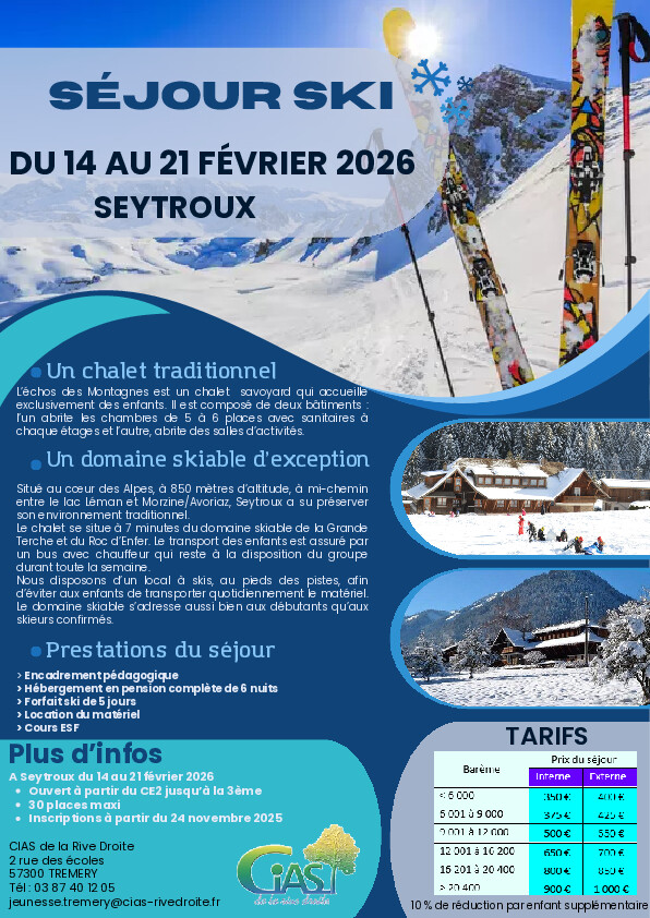 Le CIAS Rives droites a débuté les inscriptions pour le séjour au ski 2026.