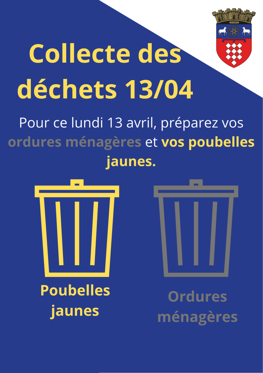 Pour ce lundi 13 avril, préparez vos ordures ménagères et vos poubelles jaunes.