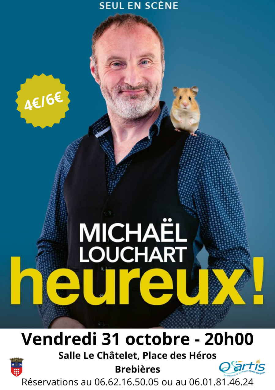 Dans le cadre de la saison culturelle d’Osartis-Marquion, retrouvez Michaël Louchart dans son spectacle « Heureux ! », un one man show plein d’émotions et de rires.