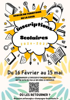 Les inscriptions scolaires dans les écoles du territoire pour la rentrée 2026-2027 sont ouvertes à compter du 16 février jusqu’au 15 mai 2026.
