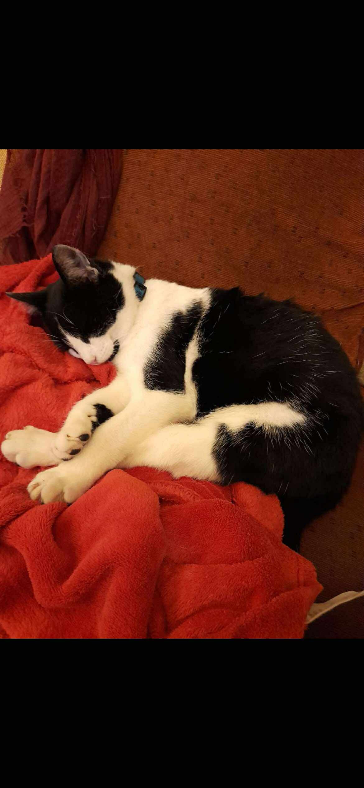 Gérard, chat noir et blanc agé de 5 ans, n'est pas rentré à la maison depuis mercredi 31 décembre. Dernière apparition à midi. Gérard est pucé, castré, très sociable. Il a l'habitude d'aller se balader autour des étangs ( à 2 mns de la maison) et venir dire bonjour aux promeneurs.