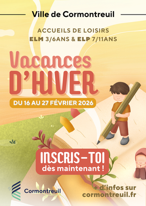 L'accueil de loisirs de Cormontreuil accueille vos enfants de 3 à 6 ans (ELM) et de 7 à 11 ans (ELP) lors des vacances scolaires de février.