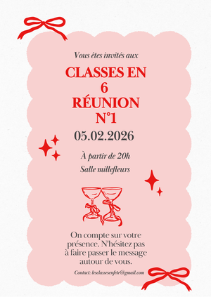 Afin d'organiser les festivités pour les classes en 6, l'équipe des classes vous convient à une réunion le