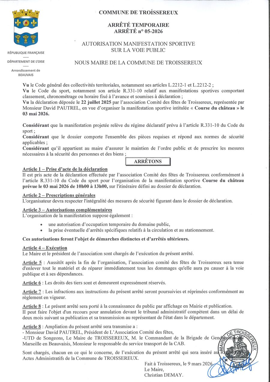 Rubrique : Tableau d'affichage, Arrêté municipal.