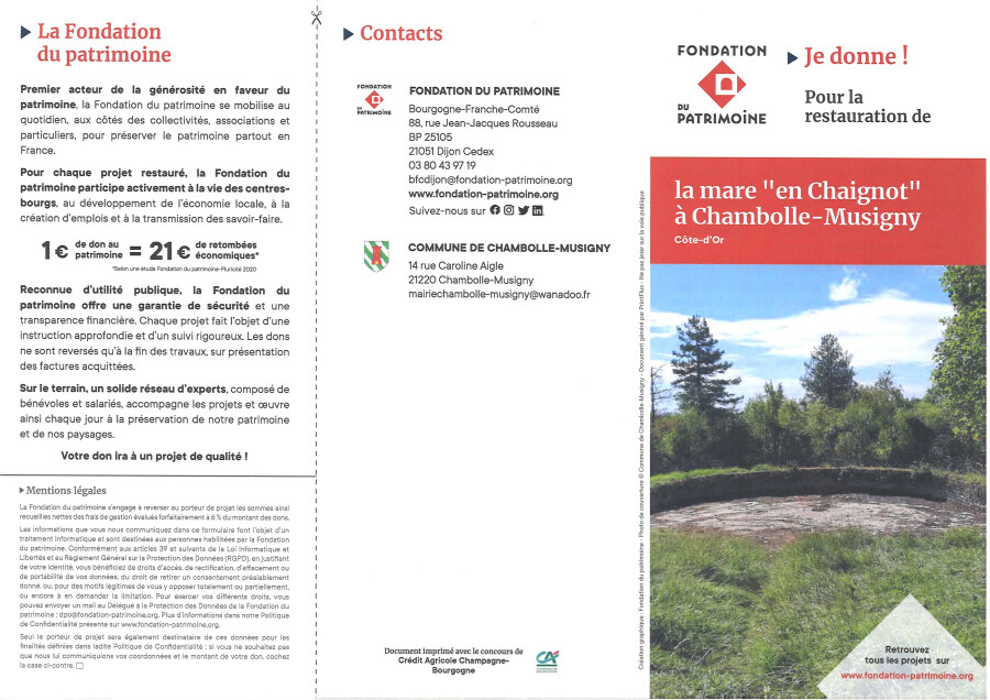 La commune appelle aux dons pour la rénovation de la Mare en Chaignot.