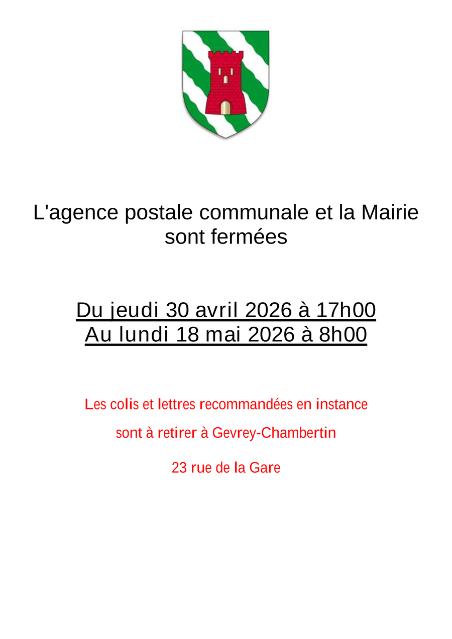 FERMETURE MAIRIE ET AGENCE POSTALE COMMUNALE